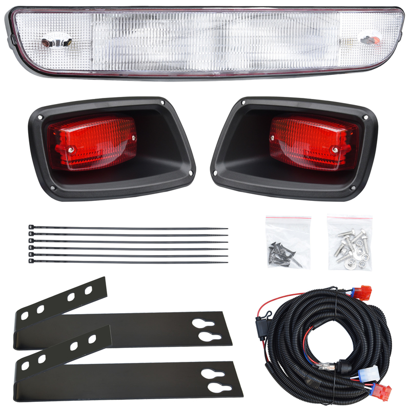 مجموعة إضاءة LED EZGO TXT، مصابيح أمامية وخلفية LED قابلة للتعديل لطرازات البنزين / الكهرباء من 1996-2013. (مجموعة إشارات الانعطاف غير مضمنة. تم تصميم مجموعات الإضاءة الخاصة بنا للعمل على 12 فولت).